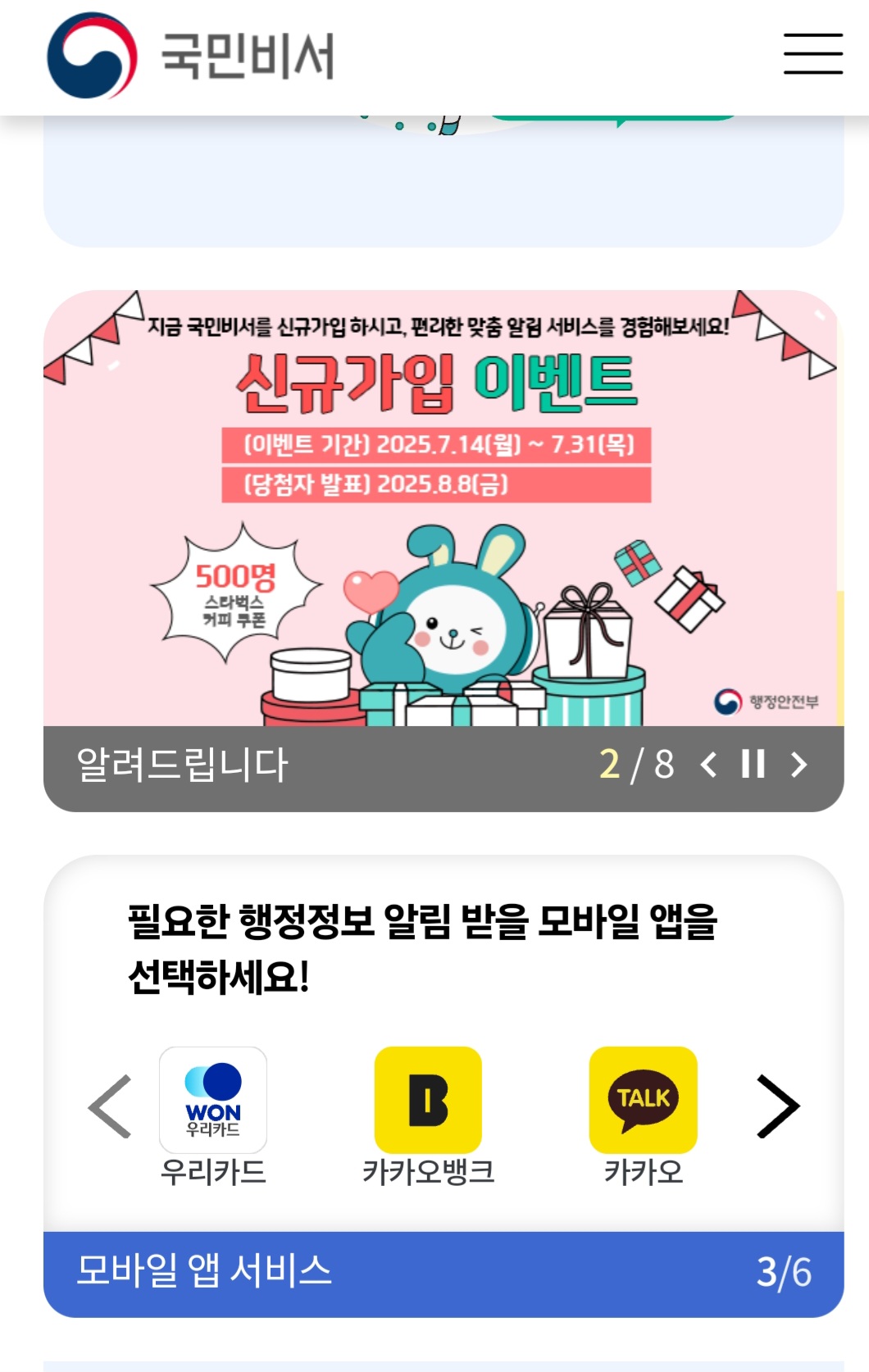 국민비서 서비스는 행정안전부가 제공하는 개인 맞춤형 알림 서비스입니다. 일명 ‘구삐’로 불리며, 국민들이 행정 정보를 편리하게 확인할 수 있도록 도와주는 디지털 서비스입니다.
