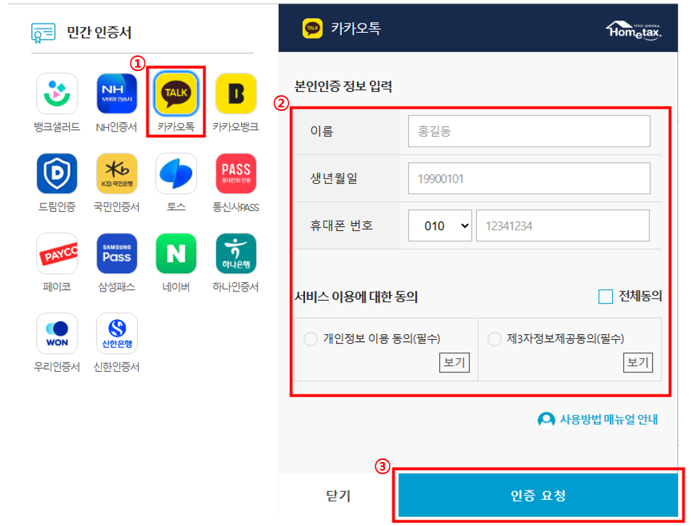 아래는 공동인증서 없이 홈택스에 간편인증으로